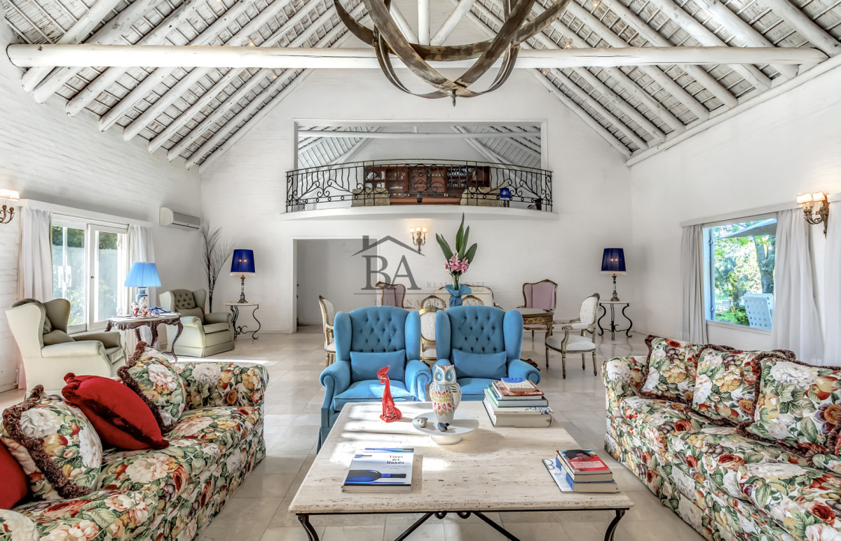 La propiedad incluye una residencia principal de 700 m², distribuida en dos plantas, con elegantes pisos de mármol Botticino y terminaciones de inspiración francesa.
